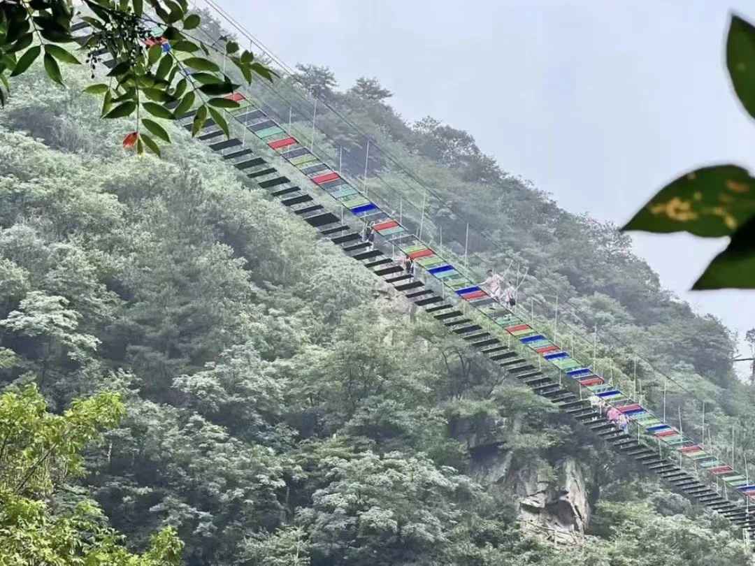 步步惊心网红桥分七彩玻璃桥和原木踏板桥两种,长度约100米。