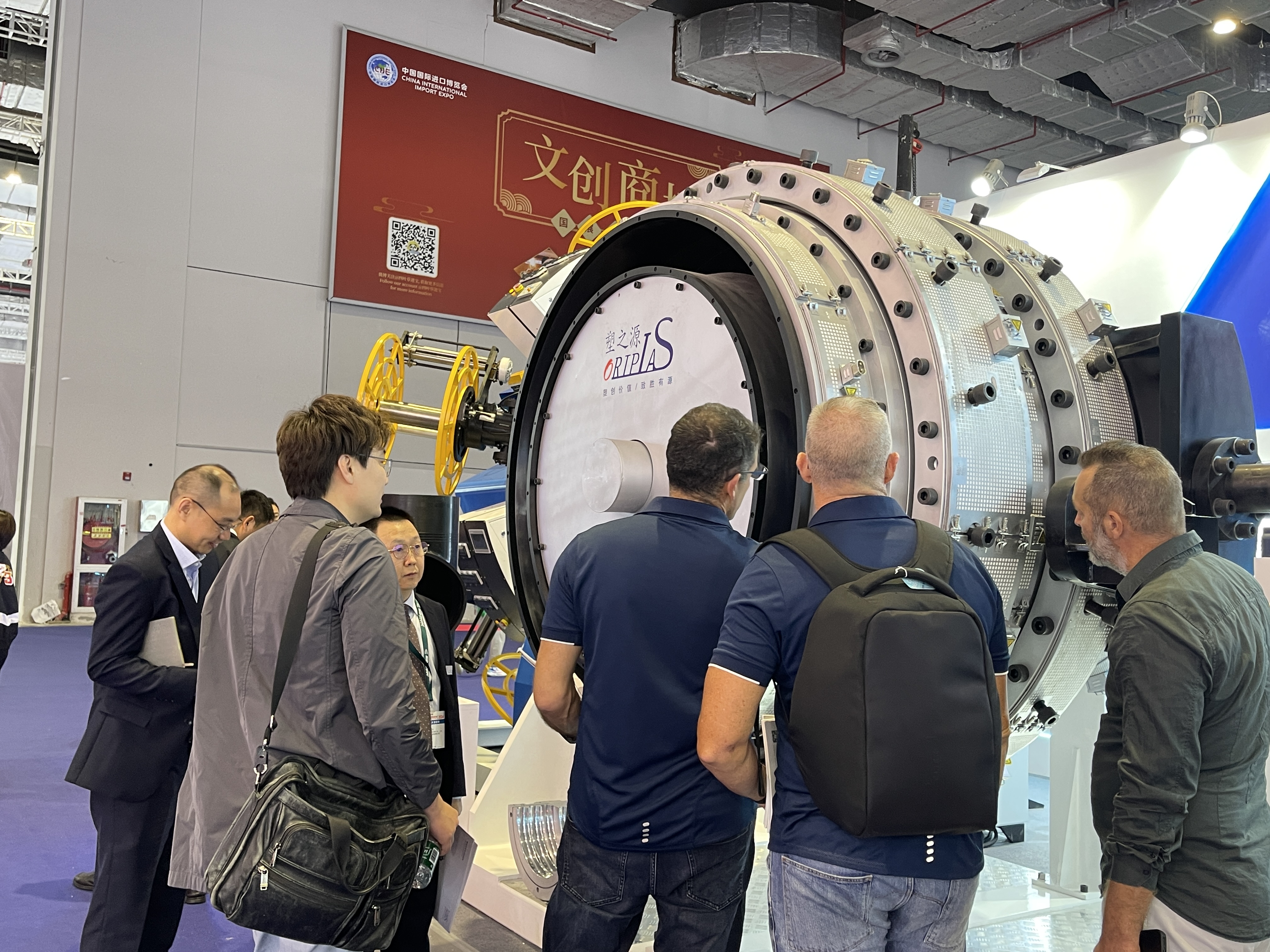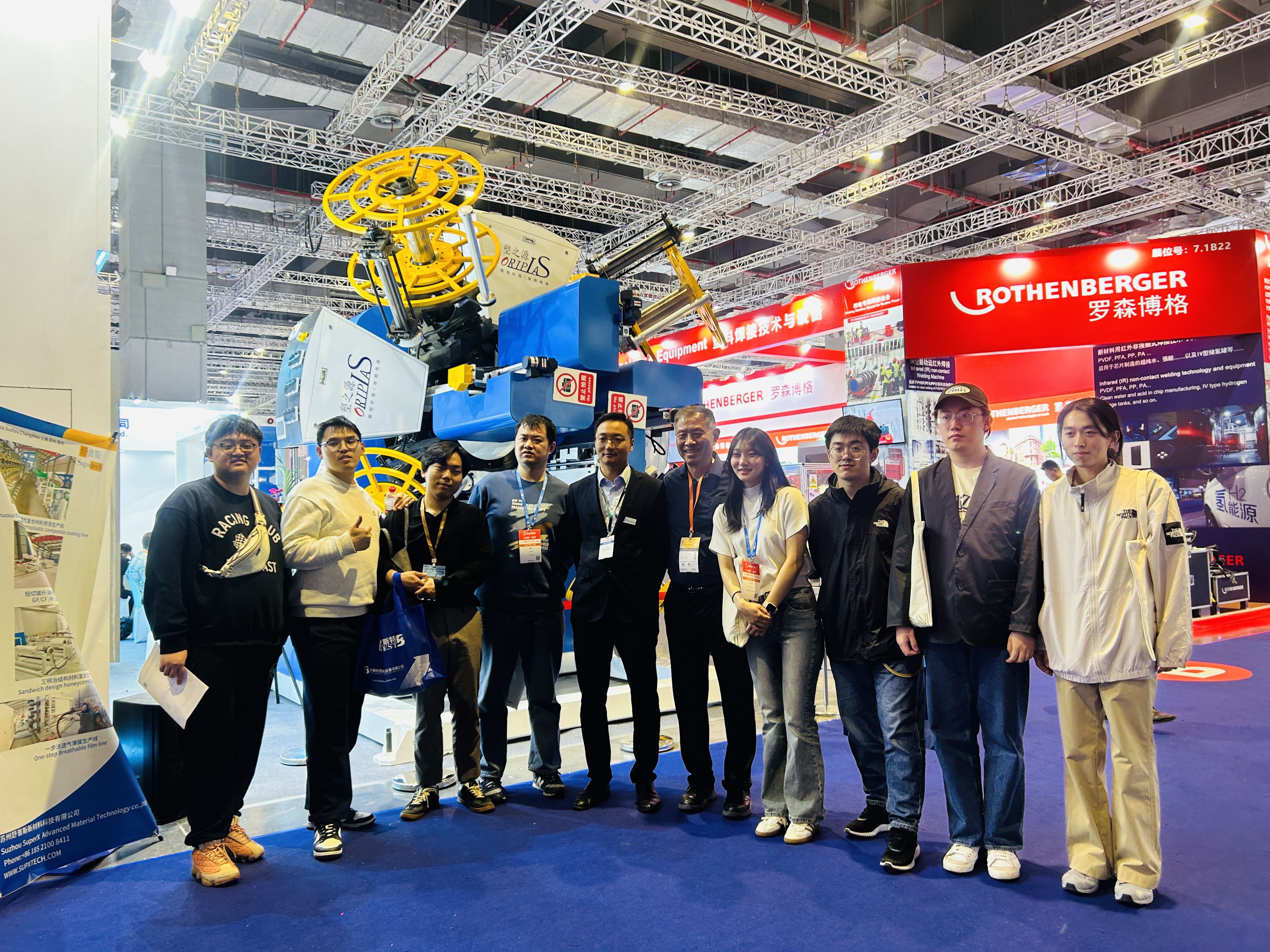 展会期间,塑之源最新一代连续纤维(玻璃纤维、玄武岩纤维、芳纶、PET、钢丝带等)预浸带增强热塑性复合管(CFRTP/TCP)缠绕设备与HDPE1600超厚壁管模具,配套塑之源第四代120/40高效节能挤出机的创新工艺和制造技术,受到了在场观众的一致好评,完美展示了塑之源的技术优势。塑之源工作人员热情的为每一位观众进行详细的产品讲解与亮点讲解。